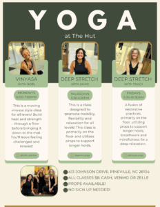 There is a class that fits everyone’s needs: chair yoga/stretch & balance/strength & balance/ Cardio Fit – Contact Lorraine Haynes: [email protected]