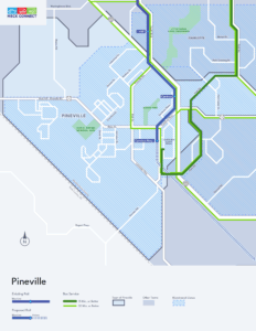 • Enhance access to service for the 15-minute frequency within five years (250,000 more people within a quarter mile of transit, compared to 29,000 people today).